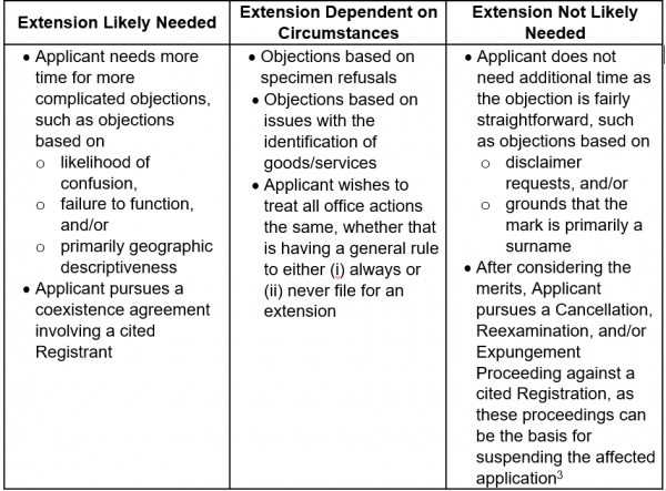 To determine whether an extension for an office action will be beneficial, an applicant should consider just how much time may be needed for a response. A few factors to consider include: