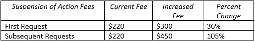Under § 1.103(a) applicants are able to request a suspension of action for a period not exceeding six months for good and sufficient cause. The Final Rule creates a new tiered fee structure for these requests.